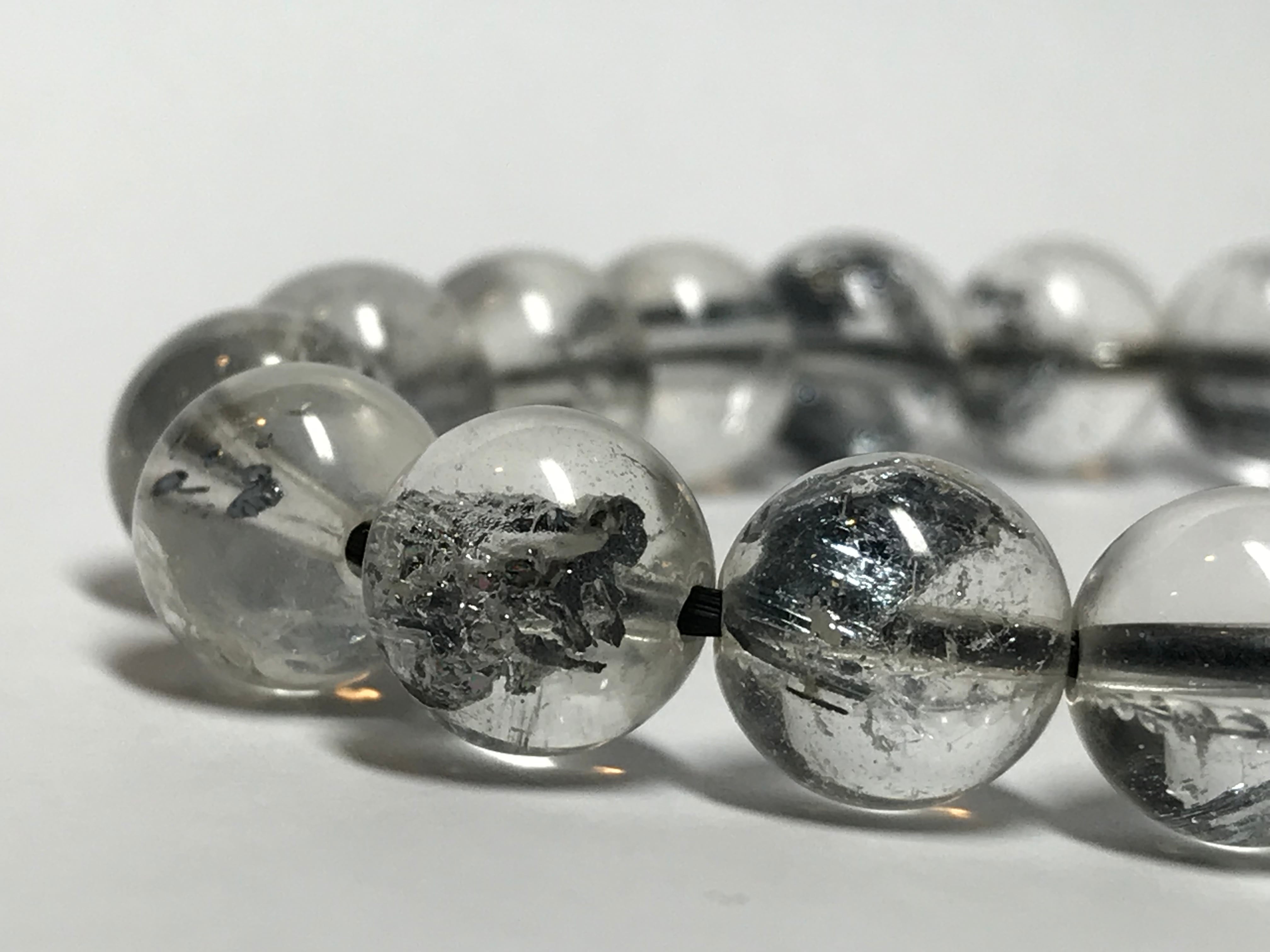 透明度の高い水晶にメタリックなスティブナイト(輝安鉱)がインクルージョンされたスティブナイトインクォーツ。