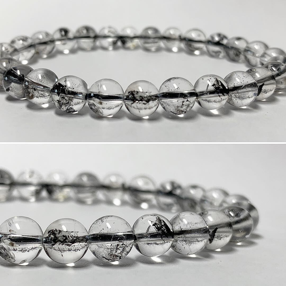 写真では透明度が伝わるように黒ゴムを通していますが、お届けする際には白ゴムに変えてからお届けします。
