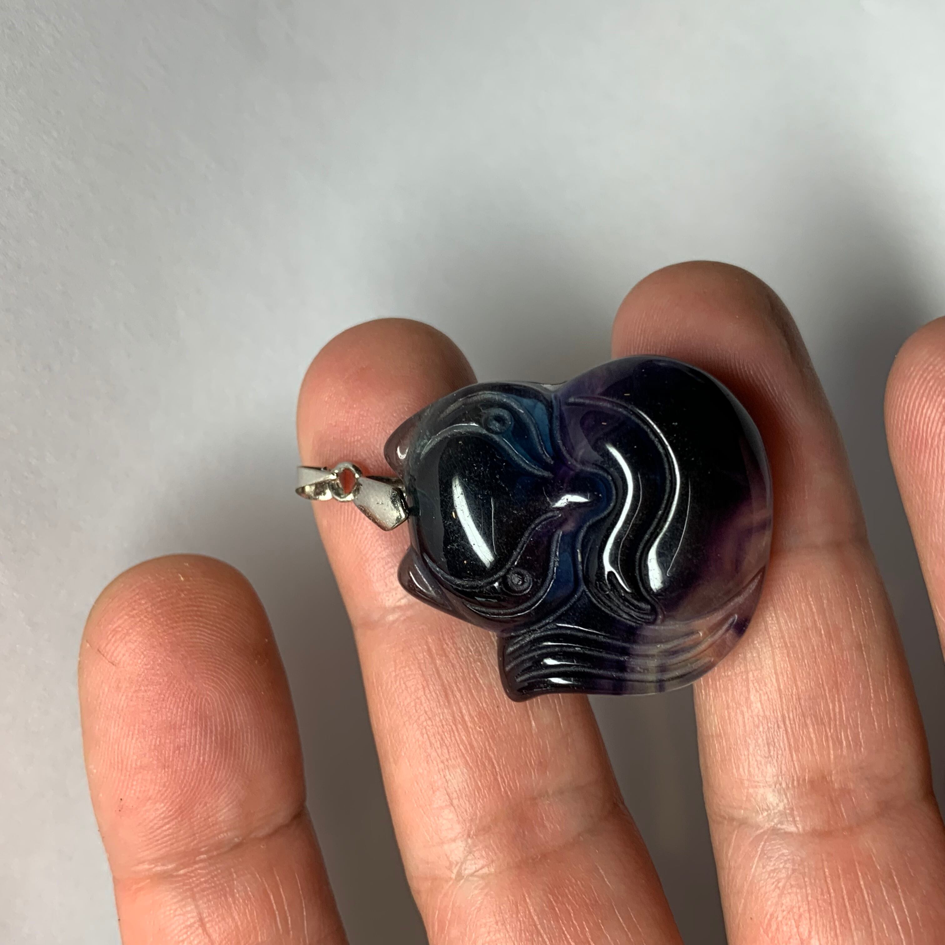 濃いめなフローライトの九尾狐狸。 九尾狐狸は中国では神より遣わされた神獣として知られています。 大きさ 29×33㎜