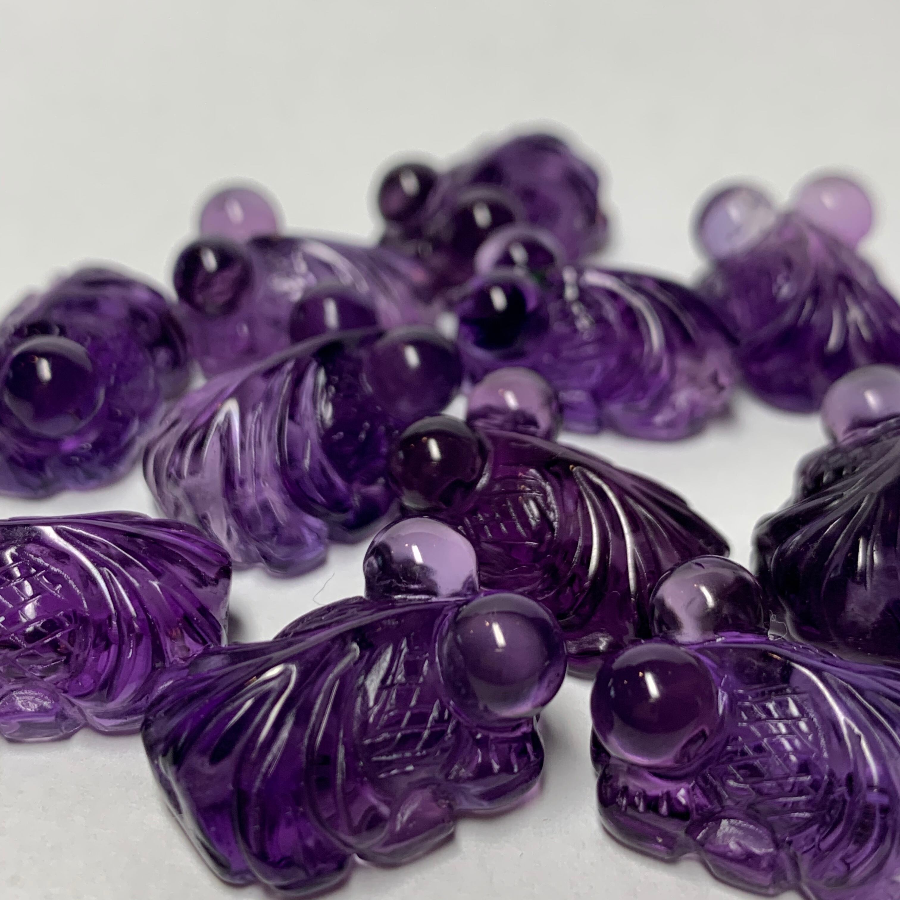 ハイグレードアメジストの金魚のカービング。