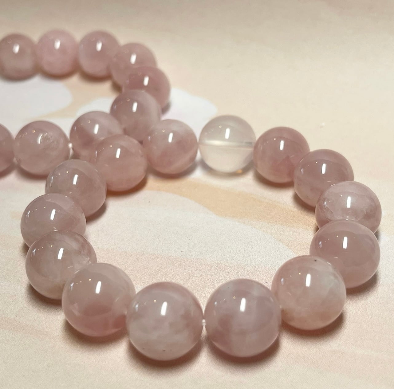 新色・桜の花びらカラー・14ミリ・マダガスカル産ディープローズクォーツ&15ミリスターローズクォーツ。